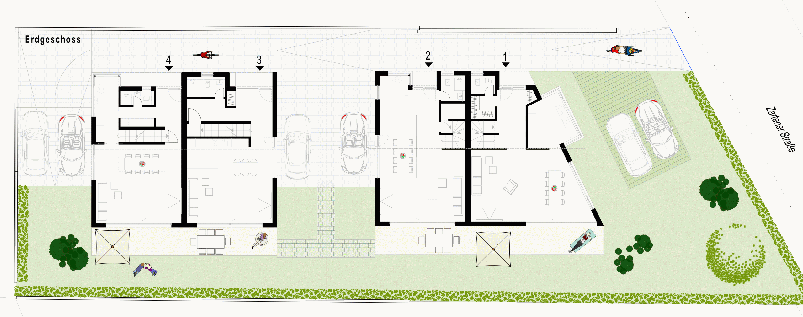 Die Häuser und Grundstücke Nr. 1+4 sind bereits vergeben.